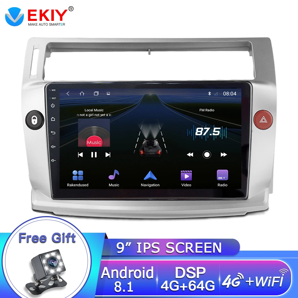 Best EKIY 9'' IPS Android 8.1 2.5D Car Radio For Citroen C4 C-Triomphe C-Quatre 2004-2009 Car Dvd Player
